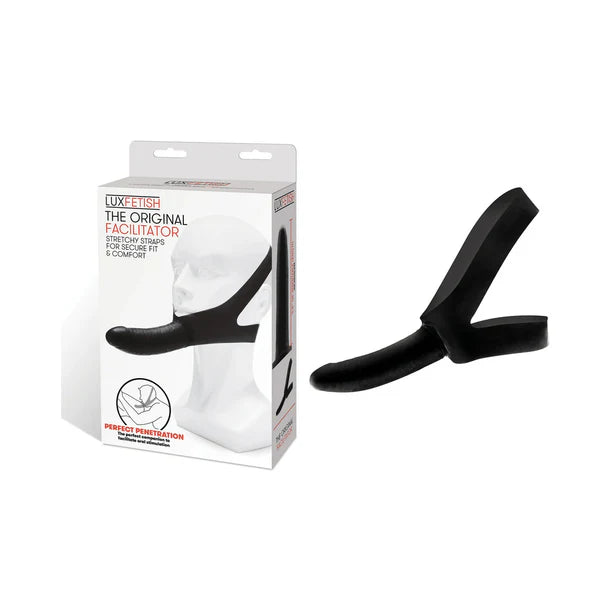 Orgasms are within reach with The Original Facilitator that turns anyone's face into the ultimate penetration station. Featuring two straps that wrap around the head and at the base of the neck, The Original Facilitator features a curved dildo that sits on the chin, leaving their mouth available for giving oral pleasure. This unisex device is perfect for all fans of kinky play and oral stimulation, and its sleek black look and portable size makes it easy to store and travel with. Made of body-safe, easy-to-clean material, this accessory is a must for adventurous couples.